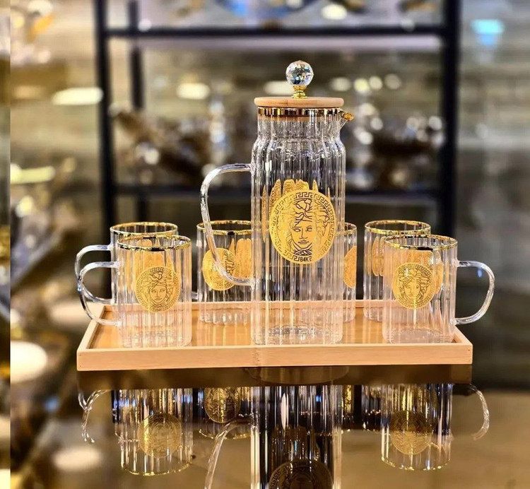 پارچ و لیوان پیرکس با لبه طلایی درجه یک و طرح زیبا ورساچه ، کاملا شعله مستقیم و آنتی شوک