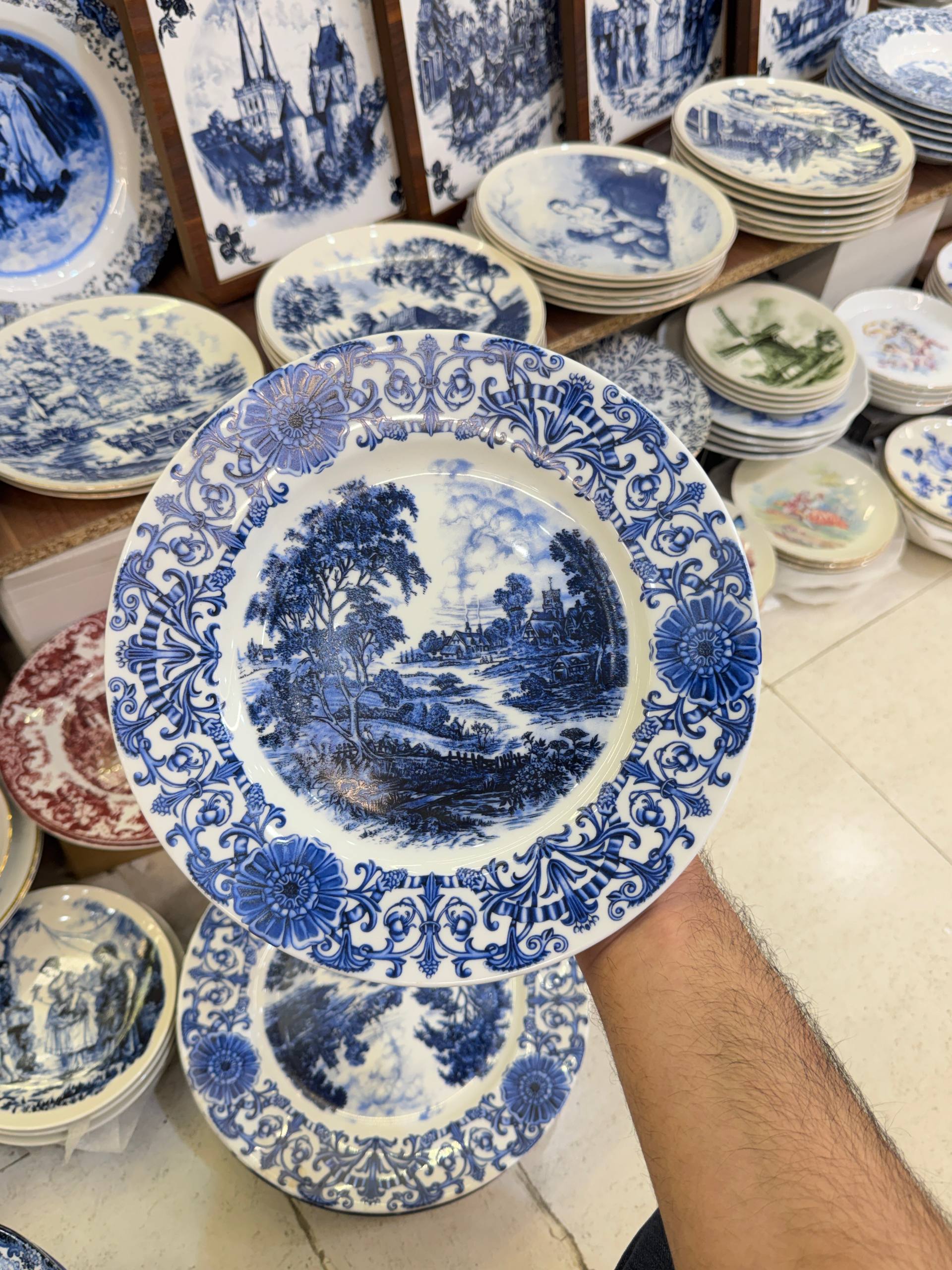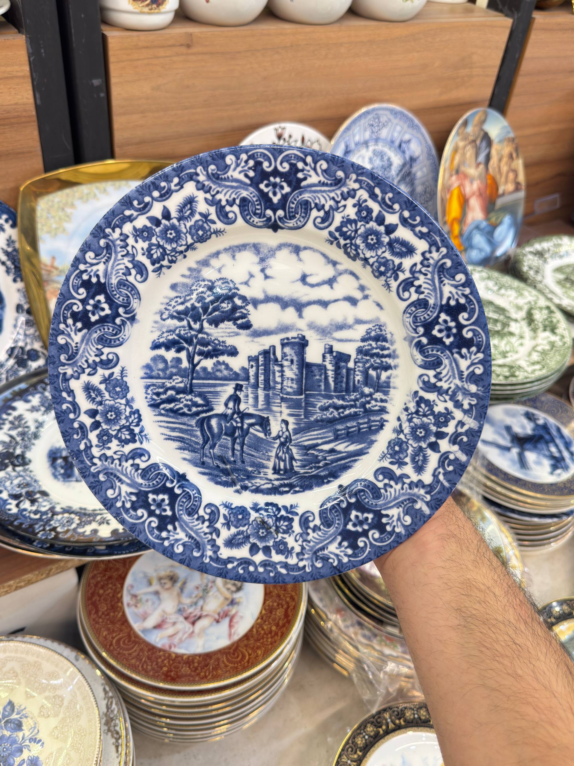 مجموعه بشقاب قلم آبی 7 تکه ، 3 عدد 25 سانت ، 2 عدد 19 سانت و 2 عدد 21 سانت ، جنس چینی درجه یک با کیفیت بسیار بالا